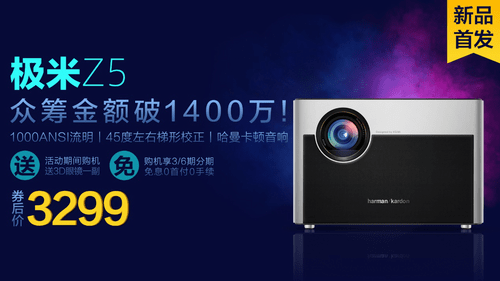 眾籌20天,眾籌金額超過1400萬元,極米無屏電視新品Z5眾籌成績刷新行業記錄,成為淘寶眾籌投影品類眾籌金額第一的產品。Z5從4月20日在淘寶開啟眾籌之后,3分鐘完成眾籌目標,15天眾籌超過1000萬元,截止5月10日結束時間,20天眾籌超過1400萬元,打破了上一代產品Z4X創造的行業眾籌記錄。作為新一代WXGA 分辨率(1280*800)產品, Z5以多項全新升級和實用功能,成就一款不僅是不無屏電視,更是智能音箱的佳作。5月11日,極米無屏電視Z5在天貓開啟限量首發,定價3499元的Z5首發領券后價格僅3299元。