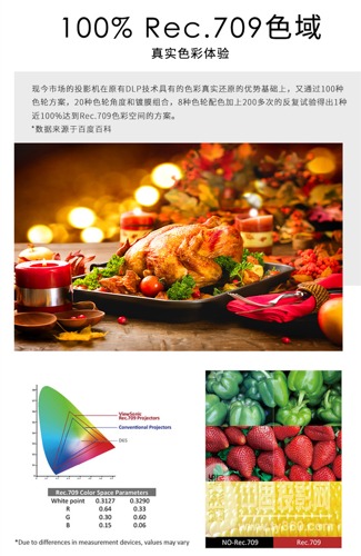 如今,家庭影院中選用投影機作為顯示終端已成為眾多發燒級影院愛好者的共識,特別是在發達國家更有“無投影,不影院”的說法,這足以說明投影機在組建家庭影院中的分量。更有一種說法強調了色彩的重要性:“人物尚未張口說話,色彩就能夠給一部電影定下基調”。隨著國內生活水平的提高和投影廠家產品技術的突起,近年來投影機的畫質效果呈現了革命性的突破。全球視訊領導品牌美國優派(ViewSonic)家庭投影機采用獨家SuperColor™超炫彩技術和六倍速 RGBRGB 色輪,可提供令人不可思議的Rec.709色彩準確度和清晰銳利的圖像,完美呈現至臻瑰麗的色彩,畫面的細節體驗宛如身臨其境。