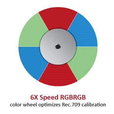值得一提的是,頂級色彩的呈現更少不了六倍速RGBRGB 色輪利用特殊涂層對RGB光譜的片段進行過濾,以豐富紅色、藍色和綠色,從而優化Rec.709色彩;同時還對色調和飽和度進行增強,使投射的影像色彩流暢自然。此外,這種六段式色輪只有三基色,并采用對稱設計,速度可達六倍,在實現卓越的圖像還原效果的同時提高色彩刷新率。