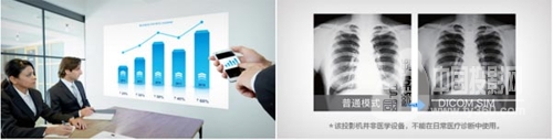 不僅以上所說的這些,為了更加方便用于醫療教學或培訓項目中的使用,Epson CB-1795F配備了DICOM SIM投影模式,比普通投影模式更清晰的投影X-Rays中的陰影部分,大大提高了用戶的使用性。