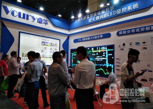 本次鄭州安博會上的亮點之一是Voury卓華自主研發的微間距黑珍珠系列0.9mm的LED拼接顯示大屏幕,采用了獨立發光顆粒構成顯示像素,屬于分散光源,且每個燈管是恒流PWM控制,單燈亮度高,配合光感設備可對環境進行亮度自適應調節,有效提高了顯示屏對比度,在產品先進性、可靠性、易用性、環境適應性、制造工藝、節能環保及使用成本等方面都具有突出表現。