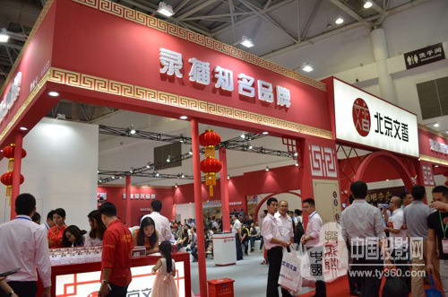 在主入口上方,北京文香紅色廣告牌與主辦方紅色遙相呼應,甚是顯眼。