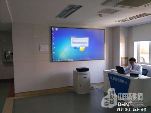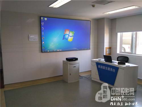 上海莘莊社區(qū)衛(wèi)生服務(wù)站的大廳采用DM907超短焦激光投影機(jī)搭配抗光幕實(shí)現(xiàn)播放視頻的功能,由于衛(wèi)生服務(wù)站的要求,投影機(jī)沒有實(shí)現(xiàn)吊裝,但是播放視頻的效果客戶非常的滿意。