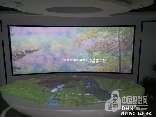 投影大屏融合系統負責播放江西省宜豐市歷代竹文化史的演變來歷,投影沙盤系統則是用來配合播放在當時宜豐市的各種品種的竹子在本地的分部。