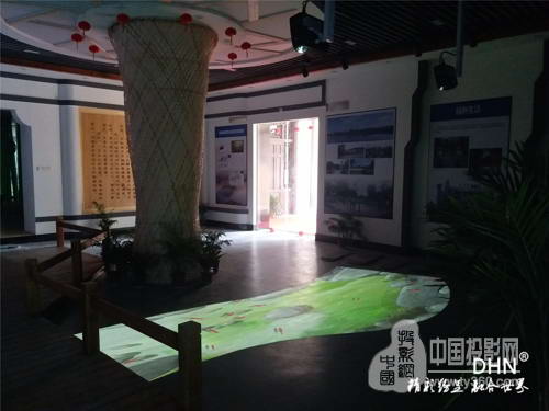 由DM907超短焦激光投影機加上一塊透明玻璃上面貼上投影膜來成像的項目,每當有人從此塊玻璃投影區域前走過時都會出現一位女士端莊優雅的站在那里介紹整個展館的項目及竹文化信息。非常具有科技感引人注目駐足于此參觀展廳聽她娓娓道來。