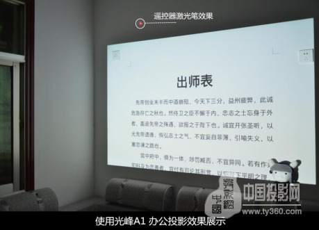 之前,我們說過光峰A1的遙控器自帶紅外激光筆功能,這時候就能派上用場了,商務演講時時刻刻引導客戶思維,給力!