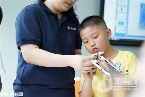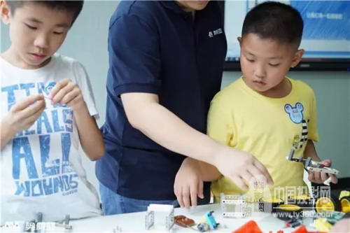 而第二小組,7歲到10歲的孩子則會交給專業的輔導老師,挑戰難度更高的戰車樂高玩具。第二組的戰車模型的樂高玩具是一個包括塑料積木、電子模塊、手動遙控器等幾十種零件的工程積木。孩子可以在家長、輔導老師的指引下,充分發揮自身的空間想象能力和動手操作能力,將零散的積木變成可移動、可遙控的戰車玩具。