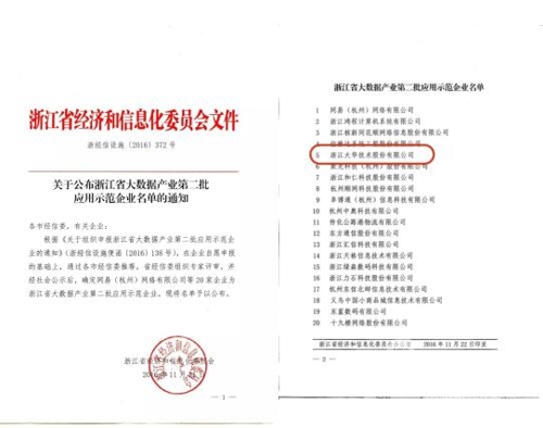 浙江省經(jīng)濟和信息化委員會公布了浙江省大數(shù)據(jù)產(chǎn)業(yè)第二批應(yīng)用示范企業(yè),大華股份經(jīng)過層層篩選和嚴苛的專家評審,從數(shù)十家企業(yè)中脫穎而出,與網(wǎng)易等二十家企業(yè)成功入選。