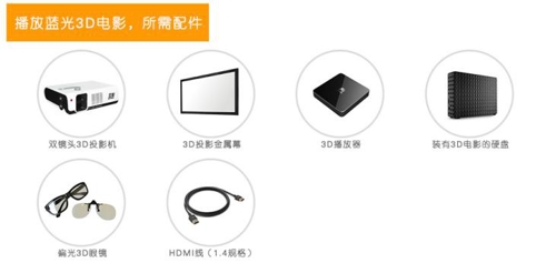 注:觀(guān)看偏光3D效果,需要偏光3D投影機(jī),3D金屬幕,3D眼鏡,3D播放器,3D硬盤(pán),其中缺少一件產(chǎn)品都會(huì)導(dǎo)致觀(guān)看不了3D。