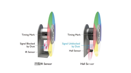 磁感應色輪(Hall Sensor)vs凹型紅外感應色輪(IR Sensor)