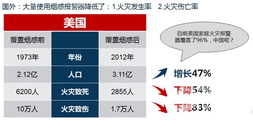 針對高層建筑的消防問題,國際上的做法是采用獨立式煙感進行火災報警。相比歐洲和美國,德國和法國是強制安裝獨立式煙感,美國是通過大規模推廣獨立式煙感才大大降低火災傷亡。