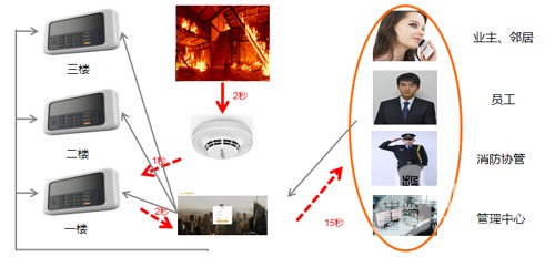 煙感感應到煙霧到報警需要2秒的時間。煙感用1秒鐘時間通過無線信號將報警信號傳輸給樓層的主機終端。