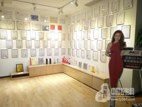 剛踏入堅(jiān)果智能影院展廳,趙麗穎的巨型人像圖立在眼前,而更吸引人的是旁邊的榮譽(yù)墻,各類榮譽(yù)獎讓人目不暇接。