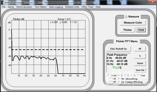 閃爍會在一定時間內造成眼睛疲勞和眩暈。通過Flicker測試波形圖,可以發現交互智能平板和投影機都在安全范圍值內。但是投影機在長久未經維修的情況下容易發生屏幕閃爍現象,投影實測值高于-45dB(人眼能感受到的閃爍頻率),但使用年限相同的交互智能平板依舊在安全值內。
