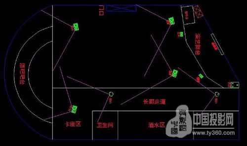 這是一個典型的演藝類音樂吧,它和演藝酒吧最大的相似之處就是,都具有一個舞臺,都會有節目表演。因此在擴聲設計上,一定是采用集中式擴聲法,最能保證清晰度和舞臺定位感。而他們的不同之處在于,音樂(餐)吧不完全以演出為主,小小的舞臺,三兩個樂手,淡淡的品味,所以并不需要特別大的聲壓覆蓋,只要在保證定位和清晰度的情況下,讓聲音盡可能均勻覆蓋則可達到不吵鬧、不平淡,不影響客人正常交流,能給人有韻味且有聲有色的聽覺享受。