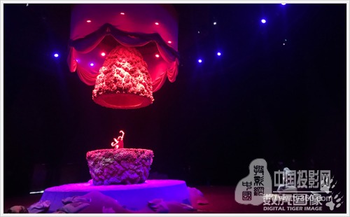 多媒體設計制作團隊數虎圖像要做的,就是如何利用這些物理設備,讓舞美影像發揮展現出無限的想象空間。上至蚊香盤投影,下至地面鋪屏投影,中至360度環屏影像,彈力幕拉起憑空呈現瀑布、樹木影像,演員在多媒體幻化的自然視覺中,互動共舞,體現茅臺酒文化的歷久彌新。