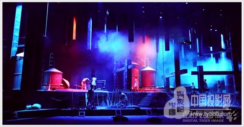 AB過道是從A廳到B廳必經的一條道。雖然不是單獨的一個表演廳,但過道兩邊依然是非常有看點的表演現場。為了讓觀眾更真切感受釀酒的過程,過道兩邊一邊播放由實地取材拍攝制作的釀酒影像,一邊是真實工人表演熱火朝天的生產現場,綜合呈現戲劇表演場景。