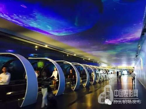 廣州白云機場航站樓的“時空隧道”成為廣州人的傲嬌新名片,凡到過此處的人,無不徜徉于其如夢如幻般的場景而流連忘返,這堪稱繼云山疊翠,珠江水韻,越秀新暉,天河飄絹,古祠留芳,黃花皓月,五環晨曦,蓮峰觀海之后的羊城第九景。媒體是這么描述這條夢幻時空長廊的:“這條借助新科技打造的“動靜結合、人景結合、虛實結合”炫酷時空長廊,集公共服務、藝術展示、廣告發布于一體,是白云機場首推的融媒體模式大型藝術體驗新空間,在全國機場尚屬首創。