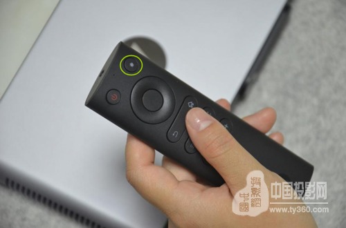 此外,遙控器的設計也很簡潔,按鍵功能分布明確,注意注意~~~輕按右上角按鈕還可以當作激光筆使用呢。