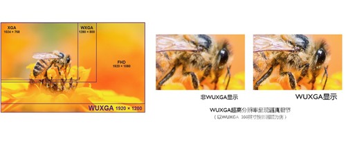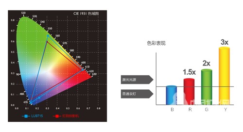 無論是應用于展覽展示、會議室或教室,激光工程投影機都可以創造亮眼的大畫面,這得益于激光光源技術。相比于汞燈,激光光源的能量轉化效率高,光源壽命長,亮度衰減慢,色彩飽和度好。
