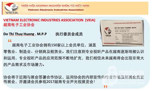 今年5月,趁著“一帶一路”峰會(huì)開(kāi)展的火熱之勢(shì),2017年越南專(zhuān)業(yè)聲光視展覽會(huì)主辦機(jī)構(gòu)安排了一系列卓有成效的越南行業(yè)協(xié)會(huì)拜訪之旅,讓我們代您親臨越南,探尋市場(chǎng)契機(jī),聽(tīng)聽(tīng)政府和協(xié)會(huì)們?cè)趺凑f(shuō):