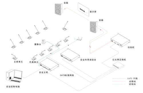 啟拓(QITUO)數字網絡會議系統連接示意圖