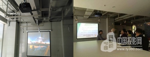 該企業前臺展廳使用3臺6500流明高亮度的工程投影機,以拼接融合的方式打造巨幅投影畫面,簡潔大氣,又極具科技感,充分體現了企業的信息化建設;該專業工程投影機提供7支高分辨率可交換鏡頭,應用雙燈泡投影系統,保持投影亮度。