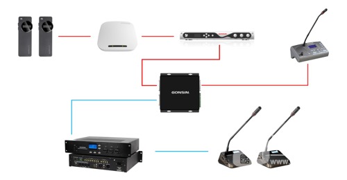 通過使用公信會議萬能盒(同聲傳譯音頻轉換器),把兩套系統整合在一起,實現無縫銜接。只要一個簡單的設備連接,即可實現系統間的互聯互通。這樣的組合型整體解決方案,不但解決了議會廳中復雜環境的應用問題,還有效節約該議會廳系統擴容、設備增購的成本問題,而且施工便捷,工期短。