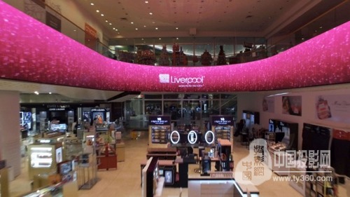 利物浦百貨公司為當(dāng)?shù)刈钣杏绊懥Φ馁徫镏行闹唬@面360°顯示屏被安裝于商場最有廣告價值的位置——香水部。項目的挑戰(zhàn)是創(chuàng)建令人驚嘆的內(nèi)容,以實現(xiàn)三個目標(biāo):氛圍,企業(yè)內(nèi)容和品牌內(nèi)容適應(yīng)。并且要求屏幕具有寬廣的視角,滿足多方位觀看的需要。