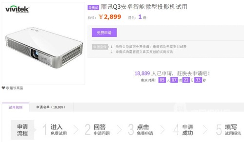 8月1日—10日,用戶可在天貓商城的試用頻道申請免費試用這臺Vivitek(麗訊)微投QUMI Q3 Plus,試用過程無需支付任何費用。申請成功后只需如實提交真實試用報告,便有機會無需返還試用機。申請成功名單將在3-7個工作日內公布。數量有限,先“申”先得,準備試用的朋友們請一定要抓緊時間,切莫因錯過而后悔哦!