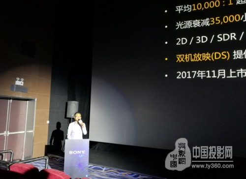 索尼中國專業系統集團數字電影市場部總監三淵德之先生首先對全球電影行業發展趨勢做了介紹,之后由索尼中國專業系統集團數字電影市場部安達洋先生重點介紹了索尼此次推出的4K HDR激光數字電影放映機,索尼SRX-R800系列激光放映機延續了索尼的4K分辨率、高對比度、光源長壽命,另外也是目前市面上唯一能實現HDR放映的熒光粉激光放映機。