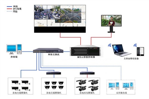 電視臺MCS云拼接顯示系統應用的指揮調度拓撲圖