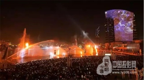 海灣水幕秀一共使用了12臺 PT-DZ21K2E投影機(中國型號:PT-SDZ21K2C),6個水幕共同組成一個寬68米、高13米的無縫巨幕,總面積達892平方米。在水幕秀啟動儀式上,投影機并排投射出360度多媒體影像,展示了以“火.水.光.敬畏”為主題元素的現(xiàn)場表演。
