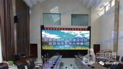 無獨有偶,2016年9月,鄆城智慧城市建設監督指揮系統建成, 也是采用Voury卓華微間距P1.6LED顯示屏大屏幕顯示系統,長6.8m,寬2.7m,顯示面積達18.36㎡。