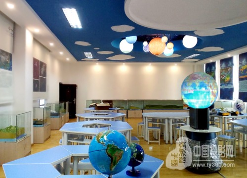 近日, 由“羿飛教育”規劃、設計、承建的成都金堂中學數字化地理專用教室正式落成。整個教室以“多媒體球幕投影演示儀”為核心,配備數字交互立體地形教學系統、全球定位實驗教學系統、基于地理信息系統(GIS)的地理教學輔助系統、基于地理信息系統(GIS)的研究性學習系統、遙感空間信息教學實驗系統等教學軟件,并輔之以手持GPS接收機、相關地形地貌模型、各種地球儀模型、八大行星吊裝模型、知識燈箱、知識窗簾等傳統教具進行環境創設。