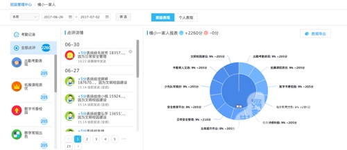 班級優(yōu)化大師能自動生成學(xué)生行為評價數(shù)據(jù)報表,這不僅為家校溝通帶來便捷,也為老師總結(jié)、改善班級甚至學(xué)校管理提供了依據(jù)。廣東胡老師非常善用數(shù)據(jù)指導(dǎo)班級改善——對照班級報表,班里哪些方面偏弱?哪些方面應(yīng)表揚?該制定怎樣的改善方案?他都能迅速了然。