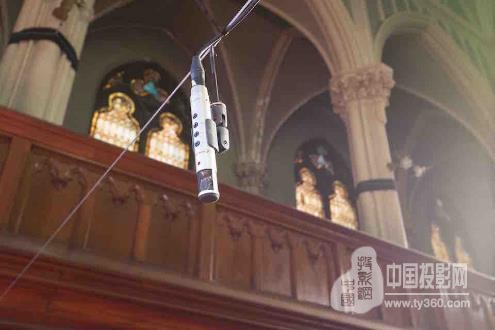 Anderson和Schwarz的話筒解決方案包括懸掛在整個教堂的10個固定話筒。其中包括4個懸掛在主觀眾席上方、高于二樓包廂的MKH 800 TWIN話筒。它們排列成了一個正方形。一對MKH 800話筒和一對MKHC 8020全指向話筒,它們連接到MZE 8120延長桿,形成了第二個、較低的正方形,懸掛在包廂下面。Anderson解釋道:“這些話筒形成了所謂AMBEO立方體”。另有一對MKH 8020話筒安裝在前排觀眾上方的橫桿上,組成A/B制立體聲話筒對,直接對著舞臺。