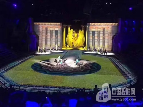 此次演出不但在藝術(shù)表現(xiàn)形式上融入了創(chuàng)新,舞臺(tái)配置也堪稱一流!270°環(huán)形看臺(tái)高度還原了古希臘劇場(chǎng)的設(shè)計(jì)。場(chǎng)內(nèi)更有8個(gè)IMAX大小的屏幕,接近全覆蓋式的投影效果再創(chuàng)視覺體驗(yàn)巔峰,松下工程投影機(jī)作為整場(chǎng)演出不可或缺的投影顯示設(shè)備,讓十三世紀(jì)的人神戰(zhàn)役得以恢弘再現(xiàn)!