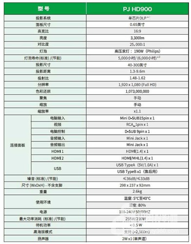 理光PJ HD900配備了190W高壓汞燈 ,在正常模式下可以使用5000小時,節能模式下擁有長達6000小時的壽命,無懼投影時間。