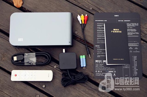看尚iCAN影院X1的白色外包裝很簡(jiǎn)約,配件部分:說明書、質(zhì)保卡、遙控器、AV輸入音視頻轉(zhuǎn)接線、HDMI連接線、電源適配器、7號(hào)電池兩顆。15鍵的紅外遙控器,功能全面操作上手很容易。