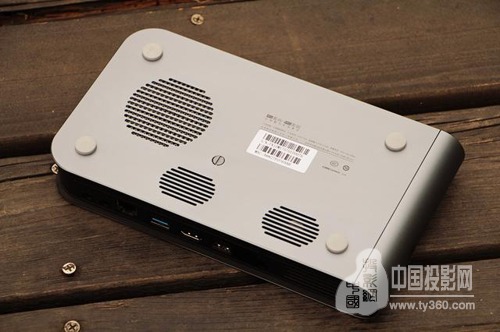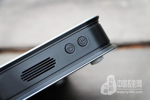 眾所周知一般這樣的投影其運(yùn)行時(shí)發(fā)熱比較嚴(yán)重,所以看尚iCAN影院X1設(shè)計(jì)了三處出風(fēng)口,分別在機(jī)身底部、鏡頭側(cè)邊和機(jī)身左側(cè)邊,所以相對(duì)而言看尚iCAN影院X1的散熱效果會(huì)更加好,底部并排的兩個(gè)孔洞是外置揚(yáng)聲器的放音口,左側(cè)邊機(jī)身還有兩個(gè)物理的調(diào)教按鈕。
