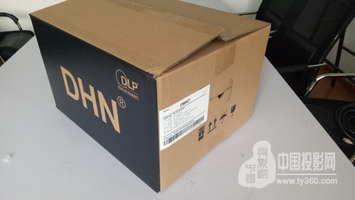 DHN DM907激光投影機的包裝采用黑色與牛皮黃作為主色調,包裝整體給人非常沉穩精致的感覺;外包裝尺寸為:518*420*328mm,包裝的正面印有非常有質感的“DHN”及DLP的字樣,包裝側面印有產品的具體型號、規格、序列號及各種常規標識等信息。