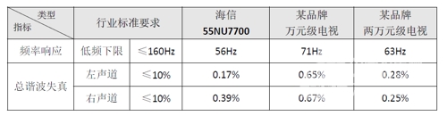 經國家數字音視頻及多媒體產品質量監督檢驗中心檢測,相比其他兩款萬元級電視,海信NU7700在低音表現上比較突出,有效頻率范圍的低頻下限達到56Hz,低音段具有很強的表現力。
