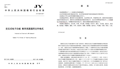 教育行業標準JY/T0615-2017《交互式電子白板 教學資源通用文件格式》相關文件