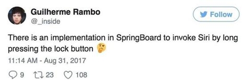 因此,iphone8沒有home鍵基本上屬于板上釘釘的猜測了。另外,根據 ios 開發者 guilherme rambo 在 twitter 上發文爆料稱,全新 iphone 將以長按電源鍵的方式來啟動 siri 功能,而另一說則是改以 assistive touch 功能連結,最終將會是如何啟動 siri成了人們最關注的話題。