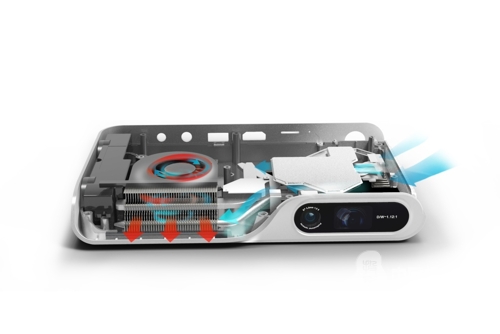 新品在散熱上也得到進(jìn)一步升級,采用雙通道靜音散熱系統(tǒng),30分貝左右的運行聲音小到可以忽略不計。而且,采用了智能化的自動風(fēng)速調(diào)節(jié),可根據(jù)投影機(jī)工作的時間調(diào)整進(jìn)風(fēng)量和出風(fēng)量。在進(jìn)出風(fēng)的設(shè)計上,神畫將雙通道進(jìn)風(fēng)口安排在側(cè)面,從投影機(jī)前臉出風(fēng),不僅實現(xiàn)了散熱效果最大化,而且不會干擾到坐在后面或側(cè)面觀影的用戶,更加人性化。