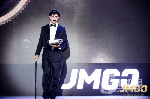 發(fā)布會伊始,伴隨著從經(jīng)典電影中走出來的卓別林、瑪麗蓮夢露的一段互動,堅果智能影院創(chuàng)始人胡震宇首先登臺調侃起了發(fā)布會與蘋果的撞車,并以此為例表明未來十年,堅果將與大家共同改變投影產(chǎn)業(yè)、改變?nèi)藗兩罘绞降臎Q心。
