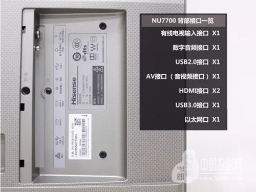 在接口方面,海信NU7700的配置也稱得上是豪華,除了必備的有線電視信號接口,還配備了數字音頻、及AV接口,來應對不同的使用環境。