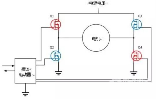 圖1:具有H橋配置的晶體管可以確保電機雙向旋轉
