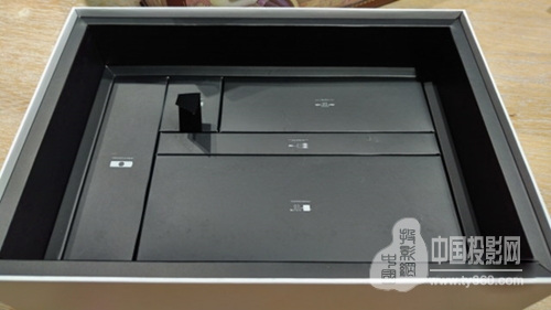 機器下面整齊地排列著配件,包含了iCAN影院X1的說明書、保修憑證以及配件盒,配件清單分別為:遙控器、遙控器電池、AV輸入音/視頻轉接線、HDMI連接線、適配器+電源線。該有的全都有,而且分類仔細、一目了然。